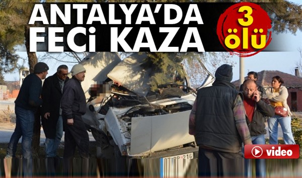 ERKHABER- Edinilen bilgiye göre, Burdur Caddesi Hastane önünde, Melih Yalınlar (27) idaresinde 07 RP 216 plakalı otomobil, aşırı hız ve dikkatsizlik sonucu refüje çıkarak ağaca çarptı. Çarpma sonucu araç içinde bulunan sürücü Melih Yalınlar, kaldırıldığı Korkuteli Devlet Hastanesinde hayatını kaybederken, araç içinde bulunan ve durumları ağır olan Talat Tuğ (24) ve Yakup Seyis (17) Antalya Eğitim Araştırma Hastanesine sevk edilirken yolda hayatını kaybetti.