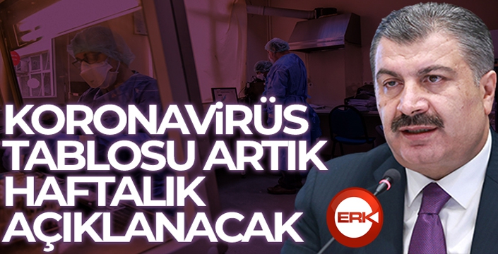 ERKHABER / ERZURUM - Sağlık Bakanı Fahrettin Koca, günlük olarak yayınlanan Covid-19 Tablosunun artık haftalık olarak yayınlanacağını açıkladı. Sağlık Bakanı Fahrettin Koca açıklamasında “Bugüne dek günlük olarak yayınlanan Covid-19 Tablosu, 1 Hazirandan itibaren haftalık olarak, yine http://covid19.saglik.gov.tr adresi üzerinden yayınlanacak.” ifadelerine yer verdi.