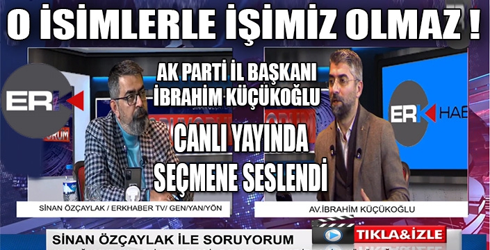 ERKHABER / ERZURUM - AK Parti Erzurum İl Başkanı Avukat İbrahim Küçükoğlu, Soruyorum Programında, usta gazeteci Sinan Özçaylak'ın sorularını yanıtladı. Programda önemli bilgiler veren Küçükoğlu, AK Parti'den aday adayı olan, aday gösterilmeyince başka partilerden aday olmayı tercih eden isimlere seslendi. Küçükoğlu, " Sahada çalışırken, ben seçimi kazandıktan sonra AK Parti'ye geçeceğim diyerek propaganda yaptıklarını duyuyoruz. Bakın Sayın Cumhurbaşkanımız da bunu ifade etti. Bizim Cumhur İttifakımızın adayları sahada. Bu adaylarımız dışında hiç kimse, ne partimizin, ne Cumhurbaşkanımızın, ne büyükşehir Belediye Başkanımızın ismini kullanmasınlar. Vatandaşımızda bu söylemlere itibar etmesin. Cumhurbaşkanımızın bir açıklaması var; bizde o açıklamayı tekrarlıyoruz. bizi bu şekilde bu durumda bırakanlarla, artık seçimden sonra işimiz olmaz." dedi.