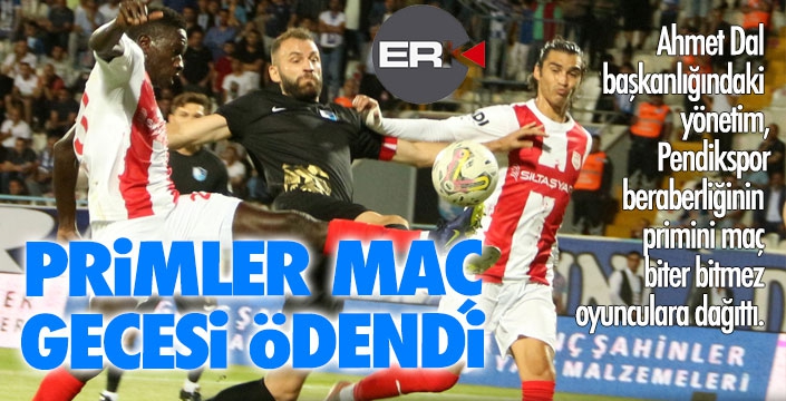 ERKHABER / ERZURUM - Yeni sezonun ilk maçında kendi evinde Pendikspor ile 0-0 berabere kalan Erzurumspor FK'da Ahmet Dal başkanlığındaki yeni yönetim kurulu futbolculara prim jesti yaptı. Maçın bitiş düdüğüyle birlikte futbolculara vaad edilen beraberlik primi, oyuncuların hesaplarına aktarıldı. Geçtiğimiz sezon primler yüzünden sürekli yönetimle karı karşıya gelen futbolcuların ilk maçta yaşanan bu sürpriz karşısında hem şaşırdıkları hem de memnun oldukları öğrenildi.