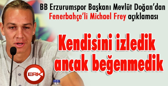 ERKHABER / ERZURUM - Büyükşehir Belediye Erzurumspor Başkanı Mevlüt Doğan, Fenerbahçe’de forma giyen Frey'in sezon başında kendilerine önerildiğini söyleyerek, "Frey ile ilgili bize teklif edildi. Kendisini izledik ancak beğenmedik. Zaten listemizde 6. sıradaydı" dedi.