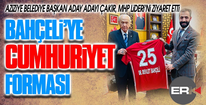 Ziyarette MHP Lideri Devlet Bahçeli'ye Erzurumspor'un Cumhuriyetin yüzüncü yılı temalı formasını hediye eden Çakır, üzerine üç hilal işlemeli, Erzurum'un sembollerinden olan Ehram hediye etti.