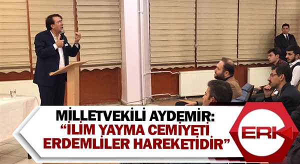 İlim Yayma Cemiyetinin milli irfanı diri tutan, Erdemliler hareketi olduğunu vurgulayan Milletvekili Aydemir, yaptığı değerlendirmede, “İlim Yayma Cemiyeti, Maddi ilmi kaynaklarımız, manevi dayanaklarımız noktasında bir özel hassasiyetin ifadesidir. Bizi altı asır dünyada hükümran kılan değerlerimizin sesi ve adresidir” dedi.