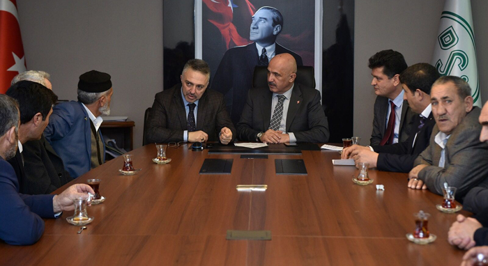 ERKHABER / ERZURUM - AK Parti Erzurum Milletvekili Prof. Dr. Mustafa Ilıcalı, Erzurum Demirdöven Sulama Birliği Başkanı Bekir Temel ve yöneticileri ile Türkiye Büyük Millet Meclisi’nde bir araya geldi. Milletvekili Ilıcalı, görüşmede, birlik yöneticilerinin sulama problemleriyle ilgili talebini, telefonla aradığı Orman ve Su İşleri Bakanı Veysel Eroğlu’na iletti.