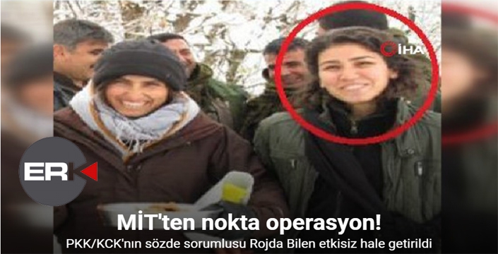 MİT, terör örgütü PKK/KCK’nin sözde gençlik topluluğu kadın genel sorumlusu Rojda Bilen’i Irak Süleymaniye’de düzenlenen operasyonla etkisiz hale getirdi. Rojda Bilen, örgütün gençlik topluluğu olarak adlandırdığı yapıdaki tüm kadın teröristlerin faaliyetlerinde birinci derecede sorumluydu. MİT’in istihbarat ağı aracılığıyla Bilen’in Irak/Süleymaniye kırsalında bulunan İran sınırındaki Pencevin bölgesinde faaliyet yürüttüğü tespit edildi. Bilen’in yerinin tespiti üzerine operasyon için düğmeye basıldı. Operasyon kararının verilmesinden çok kısa bir süre sonra Rojda Bilen, nokta operasyon ile Irak/Süleymaniye kırsalında etkisiz hale getirildi.