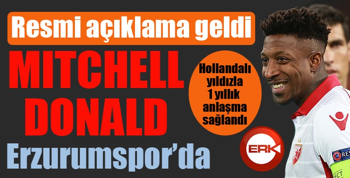ERKHABER / ERZURUM - BB Erzurumspor'dan gece yarısı transfer açıklaması geldi. Mavi-beyazlı ekip uzun süredir görüştüğü Malatyaspor'un Hollandalı orta saha oyuncusu Mitchell Donald'ı kadrosuna kattı.