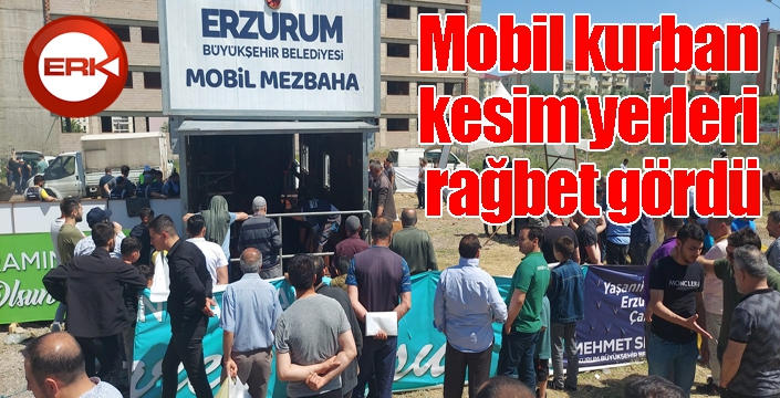 Tüm ikazlara rağmen boş arsalarda, sokak araları veya apartman bahçelerinde kurban kesimine sıkça rastlanan Erzurum’da, Büyükşehir Belediyesi beş yerde kurduğu mobil kesim konteynerleri ile vatandaşlara rahat ve hijyen imkanı sunan ortamlar oluşturdu. Büyükşehir Belediyesi’nin Doğu Anadolu Canlı Hayvan Borsası, Dadaşkent , Yıldızkent, Yenişehir Girişi ve Şükrüpaşa’da mobil kurban kesim konteynerlerine vatandaşların yoğun ilgi gösterdiği gözlendi. Bayramın birinci günü kurbanlıklarını daha önce yaptıkları başvuru sırasında kendilerine belirtilen saatte getiren vatandaşlar bin 950 TL karşılığında etlerini teslim aldılar.