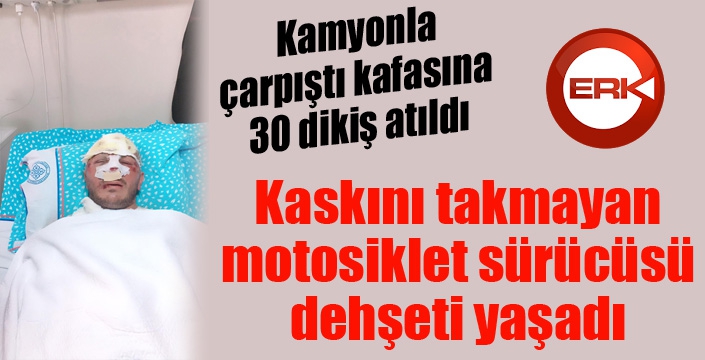 ERKHABER / ERZURUM - Erzurum’un Uzundere ilçesinde özel bir şirkette gece mesaisinde çalışan bir kişi sabah saatlerinde motosikleti ile evine dönerken kamyon ile çarpıştı. Kaskı kırık diye takmayan sürücünün aldığı darbe sonucunda kafasına tam 30 dikiş atıldı.