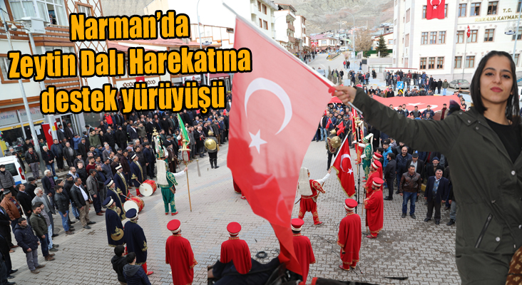 ERKHABER / ERZURUM - Erzurum’un Narman ilçesinde mehteran takımı ve atlı birlikler eşliğinde Zeytin Dalı Harekatına destek amacıyla yürüyüş düzenlendi.