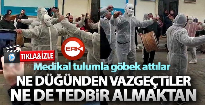 ERKHABER / ERZURUM - Bursalılar ne eğlenceden vazgeçiyor ne de tedbir almaktan. Bir sokak düğününde kaydedilen görüntülerde gençlerin medikal tulum ve maske giymesi dikkat çekti.
