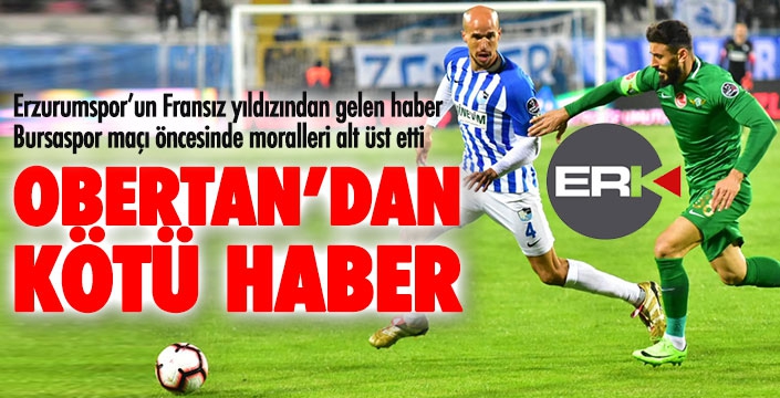 ERKHABER / ERZURUM - Büyükşehir Belediye Erzurumspor'un Fransız yıldızı Gabriel Obertan'"dan kötü haber geldi. Geçtiğimiz hafta oynanan Antalyaspor maçı hazırlıkları sırasında sakatlanan Obertan'ın yapılan sağlık kontrolleri sonucunda Bursaspor maçında da görev alamayacağı kesinleşti. Yarın Fransa'ya özel doktoruna muayene olmaya gitmesi planlanan Obertan'ın sezonu kapatma tehlikesiyle karşı karşıya olduğu da öğrenildi.