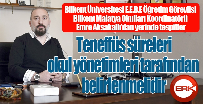 ERKHABER / ERZURUM - Bilkent Üniversitesi E.E.B.E Öğretim Görevlisi Bilkent Malatya Okulları Koordinatörü Emre Aksakallı, okullarda teneffüs süreleri ile ilgili düzenleme gerektiğini söyledi.