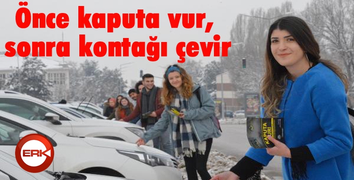 Yaklaşık bir saat süreyle kampüs içindeki araçların sileceklerine broşür bırakan kulüp üyelerinden Psikolojik Danışmanlık ve Rehberlik Bölümü 3'ncü sınıf öğrencisi Güzide Gül Özaslan ise, "Soğuk bir memlekette yaşıyoruz. Sokaktaki hayvanlar yiyecek ve barınma konusunda büyük sıkıntı yaşıyor. Biz de öğrenciler olarak elimizden geldikçe bir şeyler yapmaya çalışıyoruz. Kaputa vur projesiyle daha çok insana ulaşarak bu konuda farklılıkları artırırız" diye konuştu. Veteriner fakültesindeki hastaneye özellikle kış aylarında kemik kırılmaları ve derisi zarar görmesi sebebiyle çok sayıda vaka geldiğini belirten Nurefşan Büyükkaraca, "Kaputa sığınan kedilerin zarar görmemesi için böyle bir çalışma başlattık" dedi.