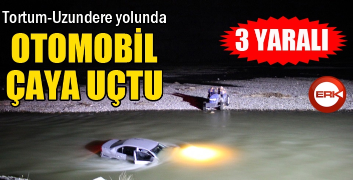 ERKHABER / ERZURUM - Erzurum’un Uzundere ilçesinde meydana gelen trafik kazasında sürücüsünün direksiyon hakimiyetini kaybettiği otomobil çaya uçtu. Kazada otomobilde bulunan 3 kişi yaralandı.