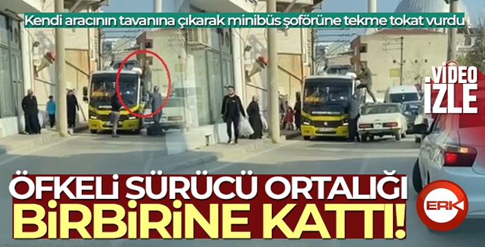ERKHABER / ERZURUM - Olay, merkez Osmangazi ilçesi Bağlarbaşı Mahallesi'nde meydana geldi. Edinilen bilgiye göre, minibüs şoförü ve otomobil sürücüsünün yol verme tartışması kavgaya dönüştü. Öfkeli sürücüsü, otomobilinin tavanına çıkarak minibüs sürücüsüne tekme ve tokat vurdu. Çevredeki vatandaşların araya girmesiyle sürücü otomobilin üstünden indirildi. Bu anlar cep telefon kamerasına saniye saniye yansıdı.