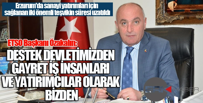TOBB Yönetim Kurulu Üyesi ve ETSO Başkanı Saim Özakalın, teşviklerin Erzurum sanayisinin büyümesine önemli katkılar sağlayacağını belirterek, Sanayi ve Teknoloji Bakanı Mehmet Fatih Kacır, Erzurum Valisi Mustafa Çiftçi, önceki dönem İçişleri Bakanı Selami Altınok başta olmak üzere Erzurum Milletvekilleri, Büyükşehir Belediye Başkanı Mehmet Sekmen ve emeği geçen tüm yetkililere teşekkür etti.