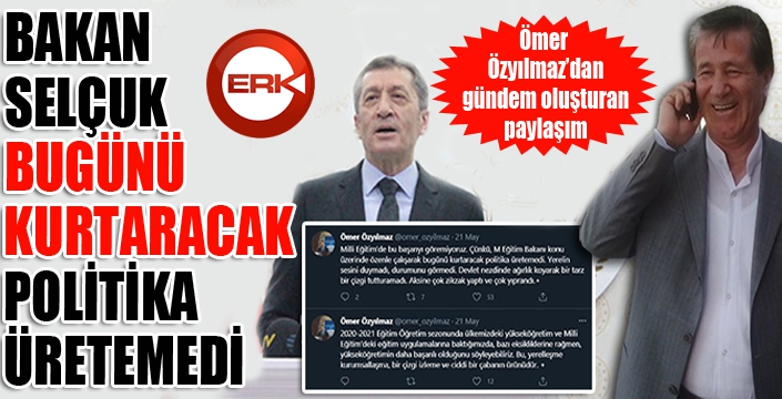 ERKHABER / ERZURUM - Erzurum eski milletvekili ve Cumhurbaşkanlığı Eğitim ve Öğretim Politikaları Kurulu Üyesi Prof. Dr. Ömer Özyılmaz, Eğitim politikalarıyla ilgili dikkat çeken bir çıkış yaptı. Sosyal Medya hesaplarından paylaşımda bulunan ve Eğitim konusunda ciddi bilimsel çalışmaların altına imza atmış olan Özyılmaz, Milli Eğitim Bakanı Ziya Selçuk'u beceriksizlikle suçladı...