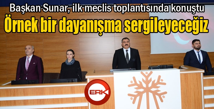 Gerçekleşen ilk toplantı, alınan yoklama ile başlayıp, Saygı duruşu ve İstiklal Marşı’nın okunmasıyla devam etti. Ardından Meclis’e Başkanlık yapan Palandöken Belediye Başkanı Muhammet Sunar açılış konuşması gerçekleştirdi. Sunar yaptığı konuşmada: “Bu meclis malum olduğu üzere bir yerel seçimi geride bıraktı. Seçilen arkadaşlarımı bir kez daha tebrik ediyorum. Artık hizmet vaktidir. Bu meclis Palandöken İlçesinde yaşayan vatandaşlara hizmet için görev yapacaktır. Belediye meclisimizle, çalışanlarımızla örnek bir belediyecilik, örnek bir kardeşlik, örnek bir dayanışma sergileyeceğimize kanaatim tamdır. Bu hususta meclis üyelerimizin tamamının görüşünün de aynı doğrultuda olduğunu biliyorum. Bütün arkadaşlarımın çalışmalarımıza her zaman olumlu katkı sunacaklarını şimdiden umut ediyorum. Bizim niyetimiz Palandöken halkına hizmet etmek. Burada kurumlar arası işbirliğini her zaman ön sıraya koyacağız. Çatışmadan çalışacağız. Daha güzel bir ilçe için görev yapacağız” diye konuştu.