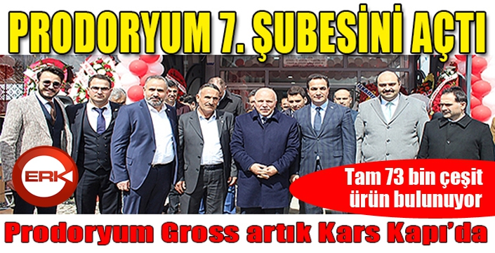 ERKHABER / ERZURUM - Erzurum’da alışverişin en keyifli adresi olan Prodoryum, 7’nci şubesini Karskapı’da hizmete açtı. Devasa büyüklükteki Prodoryum Gross’ta gıdadan kozmetiğe, elektrikli ev aletlerinden mutfak ürünleri, şarküteri, sebze ve meyveye varıncaya kadar tam 73 bin çeşit ürün bulunuyor. SÖZAŞ Grup bünyesinde Erzurum’un marka alışveriş mağazaları zinciri olan Prodoryum, 7’nci şubesinin kapılarını Karskapı’da açtı. Prodoryum Gross’un açılışına Erzurum Büyükşehir Belediye Başkanı Mehmet Sekmen, Genel Sekreter Zafer Aynalı, Yakutiye Belediye Başkanı Mahmut Uçar, Aziziye Belediye Başkanı M. Cevdet Orhan, Erzurum Ticaret ve Sanayi Odası (ETSO) Başkanı Lütfü Yücelik, ETSO Meclis Başkanı Saim Özakalın, esnaf ve meslek odalarının temsilcileri, davetliler ve vatandaşlar katıldı.