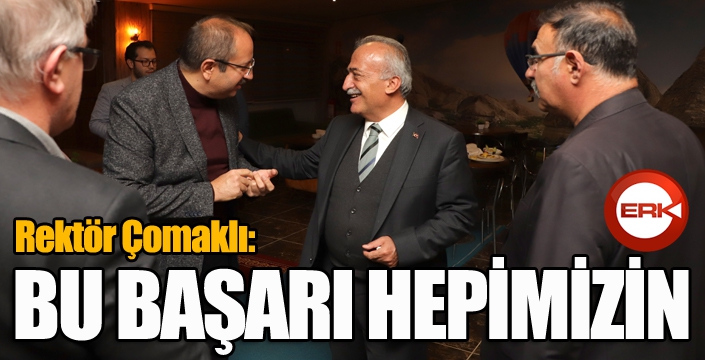 İlk olarak Dijital Dönüşüm ve Büyük Veri Çalışmaları kategorisinde YÖK 2022 Yılı Üstün Başarı Ödülü aldıklarını, ardından da öğrencileri sektör temsilcileriyle buluşturma ve onları iş hayatına hazırlama açısından büyük önem taşıyan Doğu Anadolu Kariyer Fuarının Öğrencilerin En Memnun Olduğu Kariyer Fuarı seçilmesiyle ikinci ödülü de Atatürk Üniversitesine kazandırdıklarını belirten Rektör Çomaklı: “65. Yılını kutlayan Atatürk Üniversitesi, son yıllarda yaşadığı yapısal değişim ve dönüşüm ile önemli bir ivme kazanmış ve birçok alanda adından söz ettirmeye başlamıştır. Hem saygın sıralama kuruluşlarındaki yerimiz hem de elde edilen ödüller bunun en büyük göstergesidir. Üniversitemiz dün olduğu gibi bugün de bilim üretmeye ve ürettiği bilimi toplumun faydasına kullanmaya devam etmektedir. Ülkemizin her alanda ortaya koyduğu vizyona yönelik adımlar atılarak destek verilmekte, akademik ve bilimsel çalışmalar sonuna kadar desteklenmekte ve öğrencilerimizin kaliteli eğitim almaları için her türlü çalışma hayata geçirilmektedir. Bu çabanın sonucunda da üniversitemiz çeşitli ödüller ile taltif edilmekte, bu durum da bizleri ziyadesiyle gururlandırmaktadır. Bu başarıların sadece bizlere değil tüm üniversite ailemize ait olduğunu göstermek ve yaşadığımız mutluluğu paylaşmak için siz değerli çalışma arkadaşlarımız ile her hafta düzenlediğimiz toplantımızı yemek programıyla gerçekleştirmek istedik. Sizlerin nezdinde tüm üniversite mensuplarımıza teşekkür ediyor, çalışmalarımızın daha nice ödüllere vesile olmasını diliyorum” şeklinde konuştu.