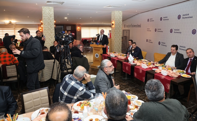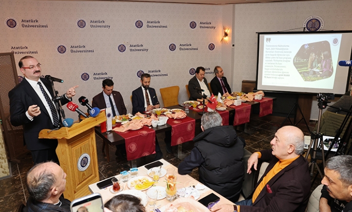 Rektör Prof. Dr. Ahmet Hacımüftüoğlu’nun yanı sıra, rektör yardımcıları, dekanlar, genel sekreter, kurumsal iletişim direktörü, Erzurum Gazeteciler Cemiyeti Başkanı Mehmet Musa Çakır ile medya mensuplarının katılımıyla yapılan toplantı oldukça samimi bir atmosferde gerçekleşti.