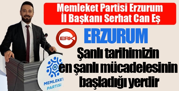 ERKHABER / ERZURUM - Gazi Mustafa Kemal Atatürk'ün Erzurum'a gelişinin 102. Yıl dönümü nedeniyle Memleket Partisi Erzurum İl Başkanı Serhatcan Eş bir mesaj yayınladı; Eş, ''Erzurum şanlı tarihimizin en şanlı mücadelesinin başladığı yerdir.''dedi.