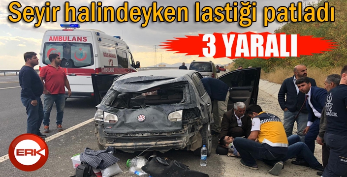 ERKHABER / ERZURUM - Erzurum’da bir araç seyir halindeyken ön lastiğinin patlaması sonucu kaza yaptı. Kazada araç içerisindeki 3 kişi yaralandı.