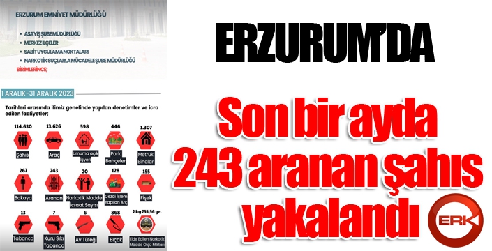 ERKHABER / ERZURUM - Erzurum Emniyet Müdürlüğü Asayiş Şube Müdürlüğü’nce son bir ay içerisinde yapılan çalışmalarda 243 aranan şahıs yakalandı.