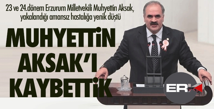 ERKHABER / ERZURUM - Yakutiye Belediyesi'nin kurucu başkanı, 23 ve 24.dönem Erzurum Milletvekili Muhyettin Aksak, yakalandığı amansız hastalığa yenik düşerek, hayatını kaybetti. Bir süredir amansız hastalıkla mücadele eden Aksak'ın bugün akşam saatlerinde tedavi gördüğü hastanede 61 yaşında yaşama gözlerini yumduğu öğrenildi.