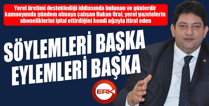 ERKHABER / ERZURUM - ETB Başkanı Hakan Oral, katıldığı bir radyo programında “Yerel gazetelerin aboneliklerini iptal ettirdiğiniz doğru mu?” şeklindeki soruya, “Borsa Başkanı benim, bu da benim tasarrufumda” diyerek cevap verdi. Yerele destek olmaktan bahsederken, yerel gazetelerin aboneliklerini iptal ettirdiğini kendi ağzıyla itiraf eden Oral, dinleyicilere “Bu ne yaman çelişki!” dedirtmekle kalmadı, aldığı bu kararın Erzurum Ticaret Borsası’nı değil, kendisini bağlayacağını ifade etti.