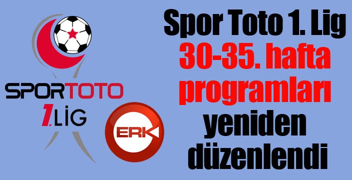 Yeniden düzenlenen Spor Toto 1. Lig 30 - 35. hafta maç programları şöyle: