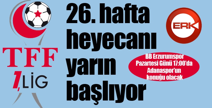 Spor Toto 1. Lig'de 26. hafta maçlarının programı şöyle:
