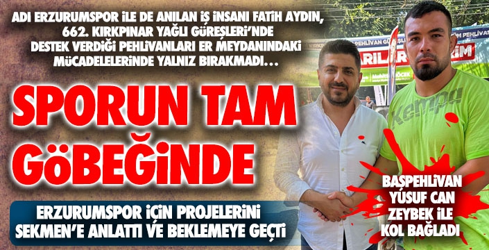 ERKHABER / ERZURUM - Erzurumspor’da önceki yıllarda yönetim kurulu üyeliği yapan ve geçtiğimiz günlerde de kulüp başkanlığı için Büyükşehir Belediye Başkanı Mehmet Sekmen ile yaptığı görüşmede Mavi Beyazlı kulüp için projelerini paylaşarak beklemeye geçen Narmanlı iş insanı Fatih Aydın, dün de 662. Kırkpınar Yağlı Güreşleri kapsamında destek verdiği güreşçileriyle birlikte er meydanı Edirne Sarayiçi’ndeydi.