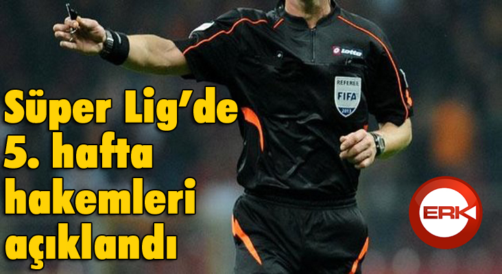 Spor Toto Süper Lig’in 5. Haftasında oynanacak maçlarda düdük çalacak hakemler açıklandı. Merkez Hakem Kurulu’ndan yapılan açıklamaya göre; 14, 15, 16 ve 17 Eylül tarihlerinde oynanacak maçları yönetecek hakemler şöyle: