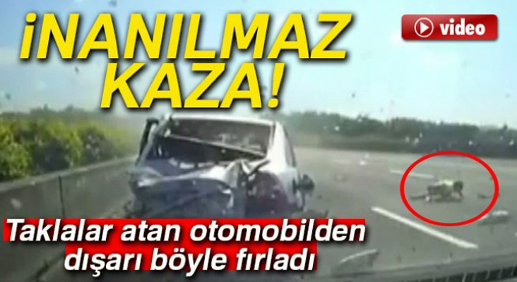 ERKHABER / ERZURUM - Sürücüsünün direksiyon hakimiyetini kaybettiği otomobil, önündeki araca çarptıktan sonra defalarca kez takla attı. İnanılmaz kazada hurdaya dönen aracın camından dışarı fırlayan çocuk yaralandı. Çocuğun ve araçtakilerin akıbeti bilinmezken, korkunç kaza başka bir aracın kamerası tarafından saniye saniye görüntülendi.