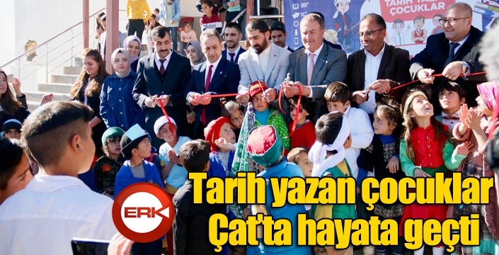 İlkokul çağındaki çocukların Türk büyüklerini tanımaları, hayatları ve başarılarıyla topluma örnek olmuş gerçek kahramanlardan ilham almalarını ve onları rol model olarak benimsemelerini sağlamak amacıyla hazırlanan Tarih Yazan Çocuklar (TYÇ) Projesi Erzurum’un Çat ilçesinde de ilk kitap ağaçları ile hayata geçirildi. Hayırsever iş insanı Zafer Medya Yönetim Kurulu Başkanı Metin Barlak’ın katkıları ile ilçenin Soğukpınar İlkokulunda çocuklar kitaplıklarına kavuştu. Okulda düzenlenen törende konuşan TYÇ Yayıncılık ve Yapımcılık A.Ş. Yönetim Kurulu Başkanı Ahmet Ortadeveci, “Bu gün Çat ilçemizde Tarih Yazan Çocuklar projesini hayata geçiriyoruz. Erzurum’da kısa süre önce başladığımız projemiz hayırsever iş insanlarımız ve kamu kurumlarımızın destekleri ile güzel bir şekilde ilerliyor. Bir eğitim programı olarak hazırlanan projemiz ile çocuklarımıza tarihi bilinci anlatabilmek, milli ve manevi duygularımızı aktarabilmek, onların yabancı dil eğitimlerine katkı sunabilmek, hayallerini anlatacağı ortamlar oluşturabilmek bizlerin görevidir. Bu görevi kendilerine sorumluluk olarak bilip çocuklarımıza destek veren tüm hayırseverlere teşekkür ediyorum. İnşallah kısa sürede Erzurum’da tüm çocuklarımız bu projeye dâhil olacak ve kendi kahramanlarını daha iyi öğrenip tanıyacak” dedi.