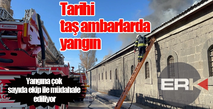 ERKHABER / ERZURUM - Erzurum’da tarihi taş ambarlarda çıkan yangın kontrol altına alınmaya çalışılıyor. Milli Savunma Bakanlığına bağlı İç Tedarik Bölge Başkanlığına ait ve geçmişte depo olarak kullanılan tarihi binadan çıkan yangına müdahale ediliyor.