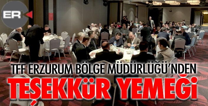 ERKHABER / ERZURUM - Türkiye Futbol Federasyonu (TFF) Erzurum Bölge Müdürlüğü, Erzurum'un 2010 yılında başlayan ve bu yıl adeta zirve noktasına ulaşarak adeta TFF'nin kamp ve eğitim üssü haline gelmesi nedeniyle futbol ailesine bir "teşekkkür" yemeği verdi. TFF'nin 12 yıldır Erzurum'da sürdürdüğü çalışmalarına destek veren kamu kurumlarının yöneticileri ile eğitimlere destek veren futbol kulüplerinin başkan ile teknik adamlarına teşekkür plaketi verildi.