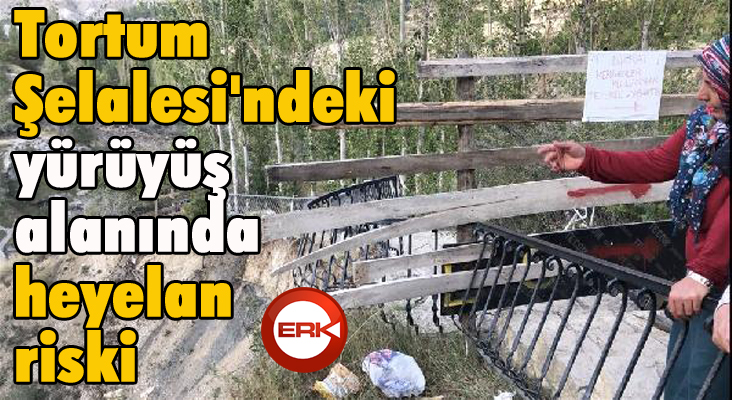 ERKHABER / ERZURUM - UNESCO'nun 'Dünya Mirası Listesi'ne aday gösterilen, Türkiye'nin en büyük şelalesi olan Tortum Şelalesi'nin yanındaki yürüyüş merdivenlerinde, 2,5 ay önce heyelan meydana geldi. Heyelanlı bölge, ziyaretçi girişine kapatılırken, etrafına da uyarıcı levhalar konuldu. Ziyaretçiler, heyelanlı bölgenin geçişe kapatılan alanının arkasındaki sahipli arazilerden iniş- çıkış yapıyor.