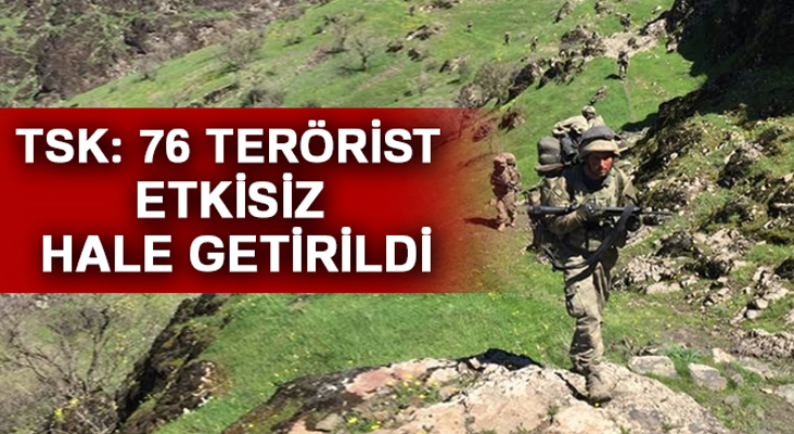 İcra edilen operasyonlarda; 3’ü sözde lider kadroda olmak üzere, toplam 76 terörist etkisiz hale getirildiği belirtilerek, 25 adet piyade tüfeği, 1 adet Dragunov keskin nişancı tüfeği, 2 adet Doçka uçaksavar, 1 adet RPG-7 R/A, 1 adet tabanca olmak üzere toplam 30 silah ele geçirilmiş ve 8 EYP imha edildiği kaydedildi.
