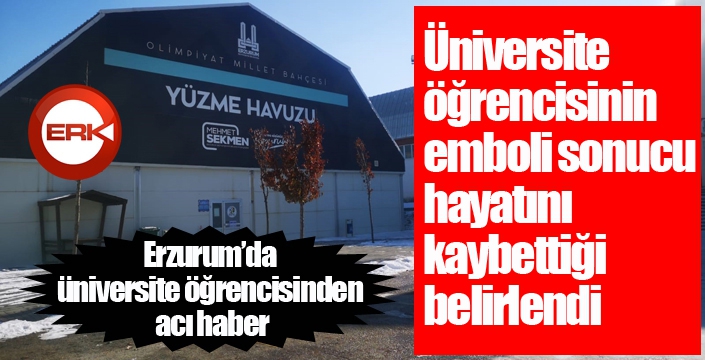ERKHABER / ERZURUM - Edinilen bilgiye göre, Olimpiyat Millet Bahçesi'nde bulunan Yüzme Havuzu'nda üniversite öğrencisi olduğu öğrenilen A.C.K. (28) yüzdüğü sırada bir anda hareketsiz kaldı. Havuzda bulunan görevliler tarafından ilk müdahalesi burada yapılan A.C.K. sevk edildiği hastanede yapılan müdahalelere rağmen kurtarılamadı. Şahsın daha önce geçirdiği bir rahatsızlığı olduğu belirtilirken, olayla ilgili inceleme başlatıldı.