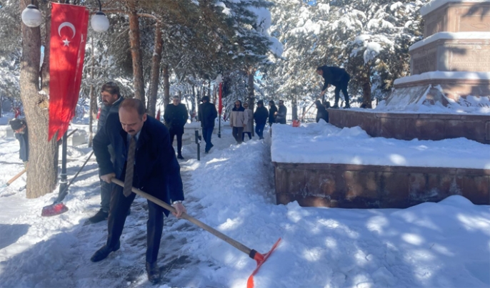 Cuma namazı öncesinde yönetimi ile birlikte Karskapı Şehitliğini ziyarete giden İYİ Parti İl Başkanı Ali Öğdük'ü karla kapanan yollar durduramadı. Ekibiyle birlikte Şehitliğin karını temizleyen Ali Öğdük, şunları söyledi, "Terörsüz Türkiye Süreci, belli ki yöneticilerimize Şehitlerimizi unutturmuş.