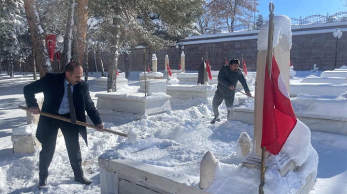 ERKHABER / ERZURUM - İYİ Parti Erzurum İl Başkanı Ali Öğdük ve Yönetim Kurulu Üyeleri, karla kapanan Karskapı Şehitliğini temizledi.