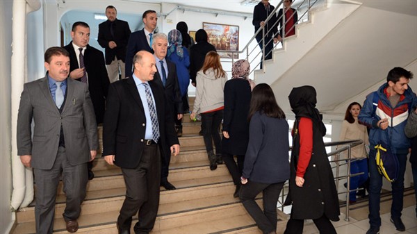 Öğretmenler odasında İl Milli Eğitim Müdürü Ercan Yıldız, Okul Müdürü Fatih Cerrah ve öğretmenlerle birlikte eğitim konularını konuşan Vali Azizoğlu, çağdaş bir toplum olabilmek için donanımlı, iyi yetişmiş insan gücüne ve bunu sağlayan kaliteli eğitime çok büyük ihtiyaç olduğuna dikkat çekti.
