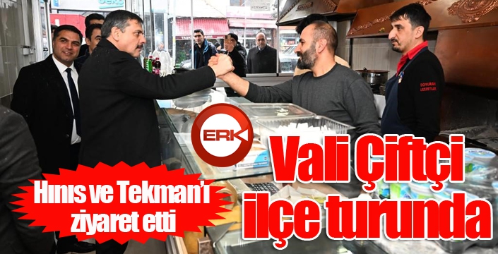 Hınıs esnafıyla sohbet eden Çiftçi daha sonra Hınıs Belediyesi’ni ziyaret etti. Hınıs Cumhuriyet Başsavcısı Yusuf Tuğrul ve Hınıs Adalet Komisyonu Başkanı Mine Cebeci ile bir araya gelen Vali Çiftçi buradan Tekman İlçesi’ne geçti.