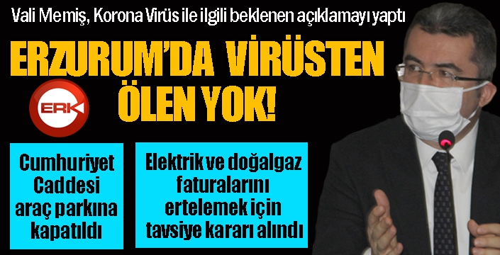 Vali Okay Memiş, Erzurum özelinde sokağa çıkma yasağının söz konusu olmadığını ve il sınırları içerisinde virüsten ölen vakanın bulunmadığını ifade ederek, “Eğer alınan bunca tedbire rağmen vaka sayıları artarsa sokağa çıkma yasağı ile ilgili kararı tabi ki bakanlığımız karar verecek. Erzurum özelinde böyle bir husus söz konusu değil. Erzurum’da şu anda iyi durumdayız bu işi yönetebiliyoruz. Erzurum’da bugüne kadar karantinaya alınmış herhangi bir yerleşim yeri yok. İhtiyaç olursa bu kararı uygulayabiliriz. Yine Erzurum’da korana virüsten ölen herhangi bir vakamız da bulunmuyor” açıklamasında bulundu.