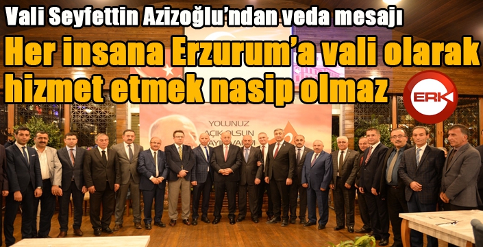 ERKHABER / ERZURUM - Valiler kararnamesi ile mülkiye baş müfettişliği görevine Erzurum Valisi Seyfettin Azizoğlu bir veda mesajı yayımladı. Azizoğlu, “Her insana Erzurum’a vali olarak hizmet etmek nasip olmaz” dedi.