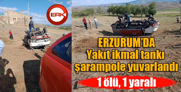 ERKHABER / ERZURUM - Erzurum'un Aşkale ilçesinde sürücüsünün direksiyon hakimiyetini kaybettiği yakıt ikmal tankı şarampole yuvarlandı. Meydana gelen kazada 1 kişi öldü, 1 kişi ağır yaralandı.