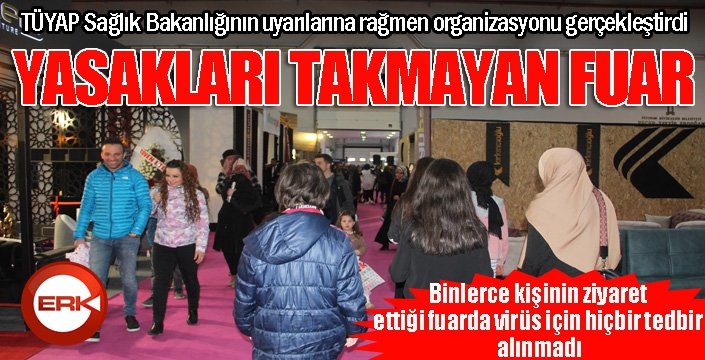Erzurum TÜYAP Recep Tayyip Erdoğan Fuar Merkezinde düzenlenen ‘EV’leniyoruz’ fuarında tüm dünyayı etkisi altına alan ve binlerce kişinin ölümüne sebep olan korona virüsüne önlem alınmadı. Türkiye’de ilk vaka'nın görülmesi üzerine yurt genelinde büyük organizasyonların iptal edilmesine rağmen binlerce ailenin akın ettiği TÜYAP EV’leniyoruz fuarının iptal edilmemesi ise dikkat çekti. Vatandaşlar Sağlık Bakanlığı ve Ticaret Bakanlığının tüm uyarılarına rağmen sergiye devam eden TÜYAP’a tepki gösterdi.