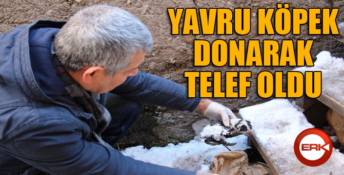 ERKHABER / ERZURUM - Erzurum'un Oltu ilçesine bağlı Karabekir Mahallesi'nde bir köpeğin merdiven altında doğurduğu yavrusu soğuktan donarak telef oldu.